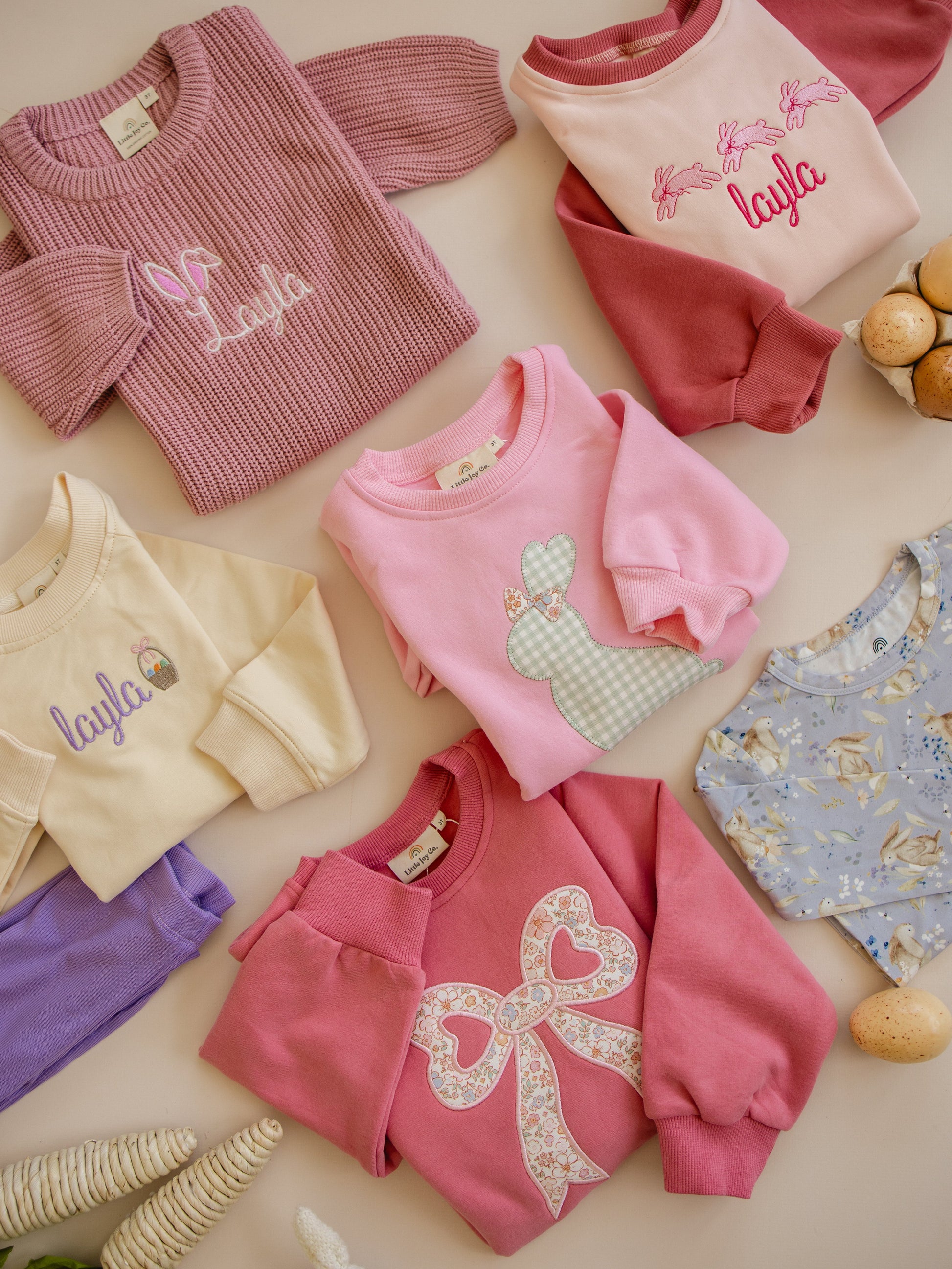 Get out of the winter blues with our Applique Floral Bow Crewneck! This sweatshirt features a charming, embroidered bow applique design, bringing a cozy and cheerful vibe to your cold weather wardrobe. Made from a soft, high-quality fabric, it offers warmth and comfort for all your activities, from family gatherings to cozy days at home. The classic crewneck style and relaxed fit make it easy to layer over your favorite tops or wear alone, while the eye-catching design adds a touch of seasonal flair.