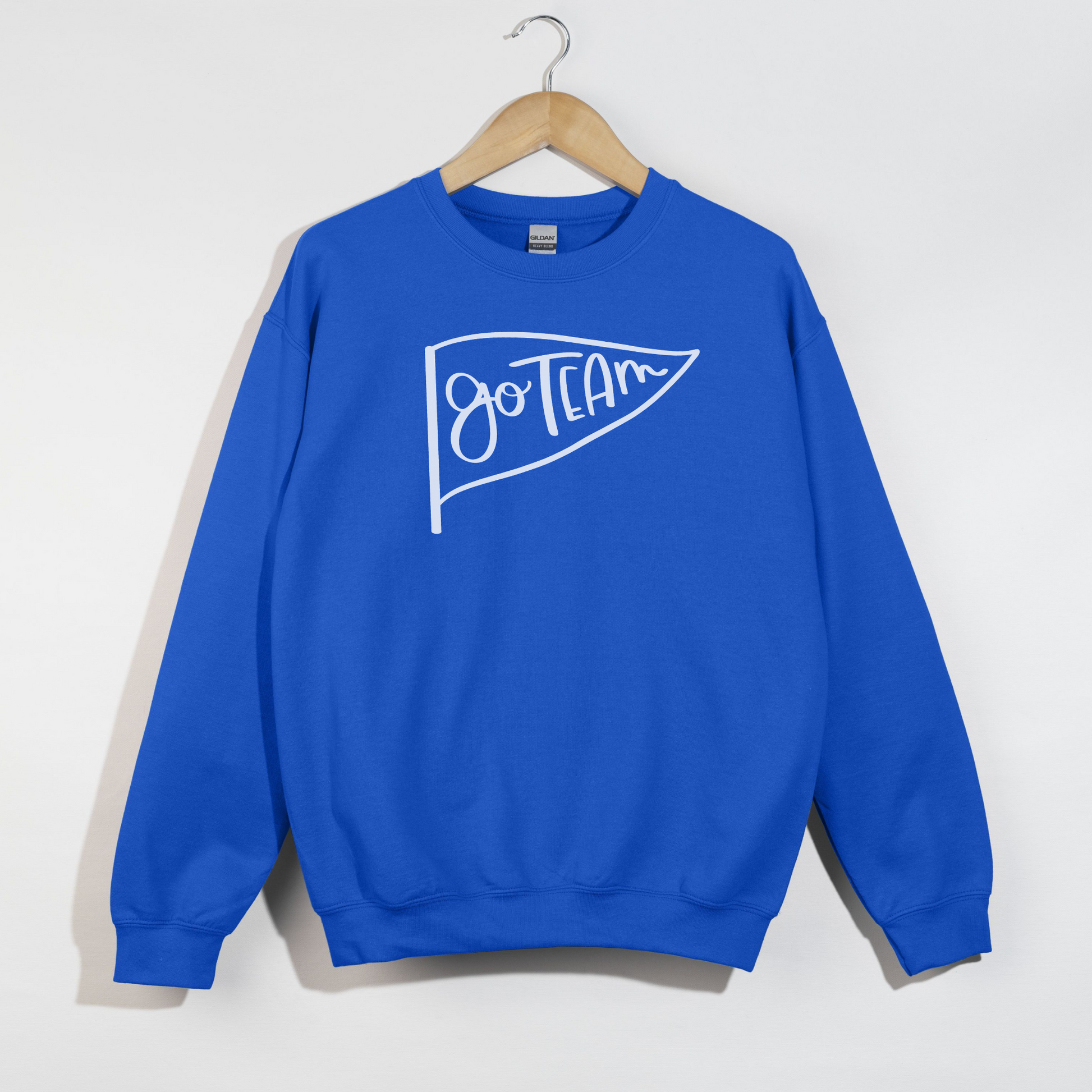 Cheer on your team in style with our Go Team Pennant Crewneck Sweatshirt – the perfect cozy essential for sports moms, students, and fans who love showing their team spirit. Featuring a bold pennant graphic on premium cotton-blend fleece, this sweatshirt is both soft and durable, making it ideal for Friday night lights, tailgates, or everyday casual wear.